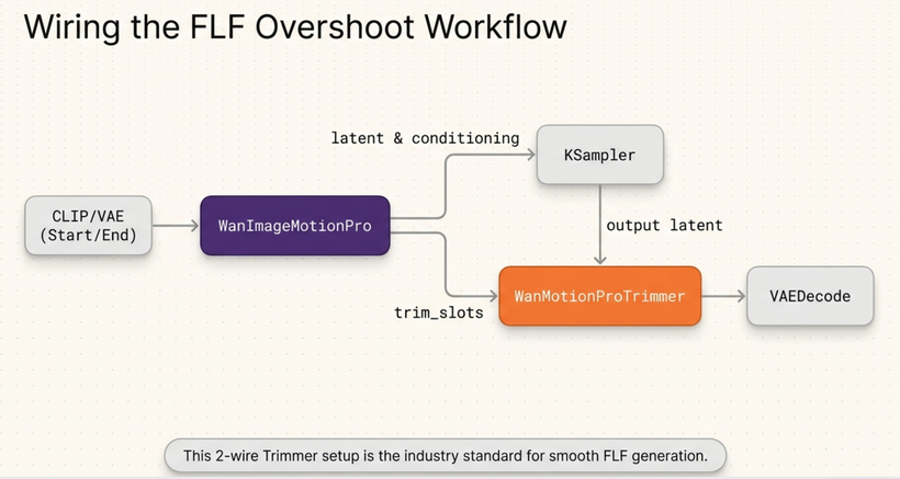 The idea is simple: when you use a first+last frame setup, the end frame used to cause a hard freeze at the tail of the clip — the model was forced to land exactly on it. With end_overshoot_slots=1, the generation window extends by 4 hidden frames beyond what you see, so the model converges toward the end image naturally instead of snapping to it.